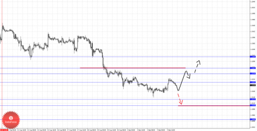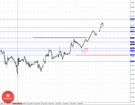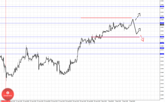 По паре Фунт/Иена ключевыми уровнями являются: 156.52, 155.97, 155.13, 154.88, 154.34 и 153.41. Здесь в целом мы ожидаем развитие коррекции от восходящей структуры 28 августа, что должно произойти после прохода ценой шумового диапазона 155.13–154.88, в данном случае цель 154.34, возле этого уровня консолидация цены и также именно отсюда мы ожидаем ключевой разворот кверху. Пробой уровня 154.34 будет располагать к формированию нисходящей тенденции, здесь потенциальная цель – 153.41. Краткосрочное восходящее движение возможно после пробоя 155.97, здесь цель – 156.52, из этого диапазона мы ожидаем движение книзу для развития коррекции, после чего цели для восходящего движения будут пересмотрены.