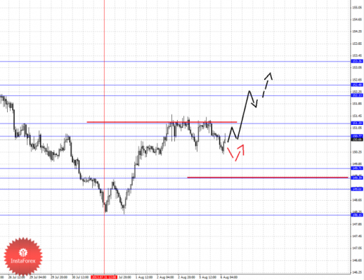По паре Евро/Иена ключевыми уровнями являются: 131.57, 130.85, 130.70, 130.48, 129.78, 129.45, 129.17 и 129.00. Здесь восходящая структура от 31 июля более на актуальна для определения целей и на текущий момент мы следим за развитием нисходящего движения от 2 августа. Для развития восходящего движения в масштабе Н1 необходимо создание локальной структуры. Продолжения движения книзу ожидаем после пробоя 129.78, в данном случае цель 129.45, пробой которого, в свою очередь, позволит рассчитывать на движение к 129.17, в коридоре 129.17–129.00 консолидация цены. Краткосрочное восходящее движение ожидаем после пробоя 130.48, здесь цель 130.70, проход ценой шумового диапазона 130.70–130.85 будет располагать к развитию восходящей структуры, в данном случае потенциальная цель – 131.57.
