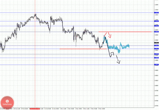 По паре Доллар/Канадский доллар ключевыми уровнями являются: 1.0022, 0.9996, 0.9982, 0.9965, 0.9924, 0.9915, 0.9899, 0.9888 и 0.9867. Здесь мы продолжаем следить за развитием нисходящей структуры от 30 октября. Продолжения движения кверху ожидаем после прохода ценой шумового диапазона 0.9924 – 0.9915, в данном случае цель 0.9899, в коридоре 0.9899 – 0.9888 консолидация цены. Потенциальным значением для низа считаем уровень 0.9867, по достижении которого ожидаем откат кверху. Краткосрочное восходящее движение возможно после пробоя 0.9965, в данном случае цель 0.9982. Диапазон 0.9982 – 0.9996 является ключевой поддержкой для нисходящей структуры, в нем возможно оформление начальных условий для развития восходящего движения. Потенциальным значением для верха считаем уровень 1.0022, движение к которому ожидаем после пробоя 0.9996.