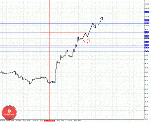 По паре Евро/Доллар мы продолжаем следить за формированием восходящей структуры от 4 апреля. По паре Доллар/Франк следим за развитием нисходящего цикла от 28 марта. По паре Фунт/Доллар следим за формированием потенциальных начальных условий для верха от 4 апреля. По паре Доллар/Иена продолжаем следить за развитием восходящего цикла от 3 апреля. По парам Евро/Иена и Фунт/Иена следим за развитием восходящей структуры от 3 и 4 апреля.