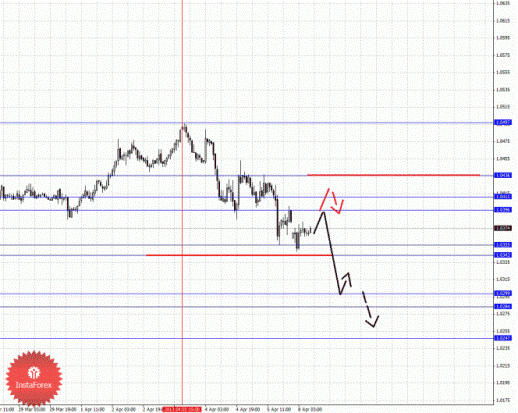 По паре Австралийский доллар/Доллар ключевыми уровнями являются: 1.0497, 1.0436, 1.0411, 1.0396, 1.0355, 1.0343, 1.0299, 1.0284 и 1.0247. Здесь мы продолжаем следить за формированием потенциала для нисходящего движения от 3 апреля. Продолжения движения книзу ожидаем после прохода ценой шумового диапазона 1.0355 – 1.0343, в данном случае цель 1.0299, в коридоре 1.0299 – 1.0284 консолидация цены. Потенциальным значением для низа считаем уровень 1.0247, по достижении которого ожидаем откат кверху. Краткосрочное восходящее движение возможно в коридоре 1.0396 – 1.0411, пробой последнего значения приведет к углубленному движению, здесь цель 1.0436, от этого уровня мы ожидаем последний ключевой разворот книзу, его пробой будет располагать к развитию восходящей структуры, в данном случае потенциальная цель – 1.0497.