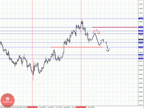 По паре Доллар/Франк ключевым уровня являются: 0.9675, 0.9627, 0.9605, 0.9589, 0.9534, 0.9522, 0.9548 и 0.9529. Здесь нисходящую структуру от 1 июня мы рассматриваем в качестве среднесрочных начальных условий для развития нисходящего цикла. Продолжения движения книзу ожидаем после прохода ценой шумового диапазона 0.9534 – 0.9522, в данном случае цель 0.9458. Потенциальным значением для низа считаем уровень 0.9429, по достижении которого ожидаем консолидированное движение в коридоре 0.9429 – 0.9458. Краткосрочное восходящее движение возможно в диапазоне 0.9589 – 0.9605, пробой последнего значения приведет к углубленной коррекции, в данном случае цель 0.9627, от этого уровня высока вероятность разворота книзу, однако его пробой окажет негативное влияние на последующее формирование нисходящей структуры в масштабе Н1.