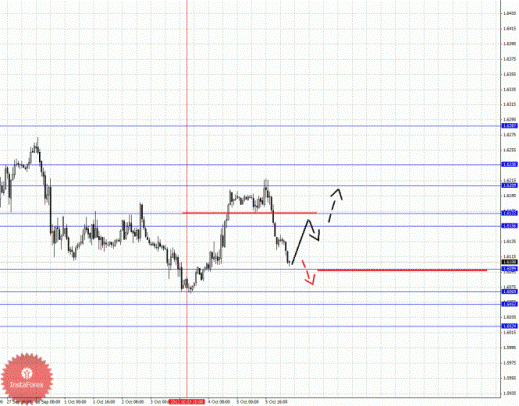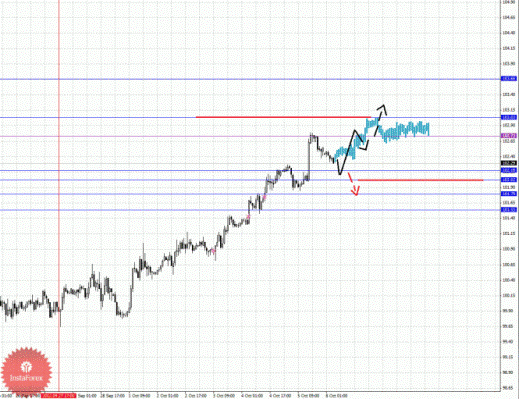 По парам Евро/Доллар и Доллар/Франк продолжаем следить за основной структурой от 1 октября, начальные условия для развития коррекции ожидаем внутри дня. По паре Фунт/Доллар продолжения движения книзу ожидаем после пробоя 1.6099. По паре Доллар/Иена следим за формированием локального потенциала для верха от 5 октября. По паре Евро/Иена продолжаем следить за формированием восходящего цикла от 27 сентября. По паре Фунт/Иена от 5 октября оформился небольшой потенциал для развития нисходящего движения.