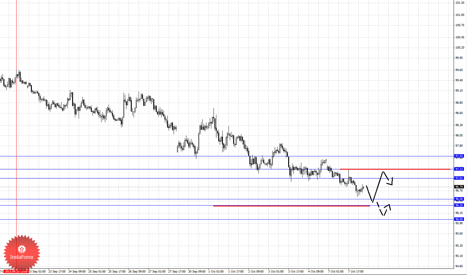 По паре Евро/Доллар от 3 октября формируется потенциал для нисходящего движения. По паре Доллар/Франк наблюдаем аналогичную структуру в противоположную сторону. По паре Фунт/Доллар от 4 октября наблюдается формирование потенциала для верха, основной структурой остается нисходящая от 1 октября. По паре Доллар/Иена потенциал для нисходящего движения ограничен уровнем 96.00. По паре Евро/Иена продолжения движения книзу ожидаем после пробоя 131.25. По паре Фунт/Иена, продолжения развития нисходящей структуры ожидаем после пробоя 155.20.