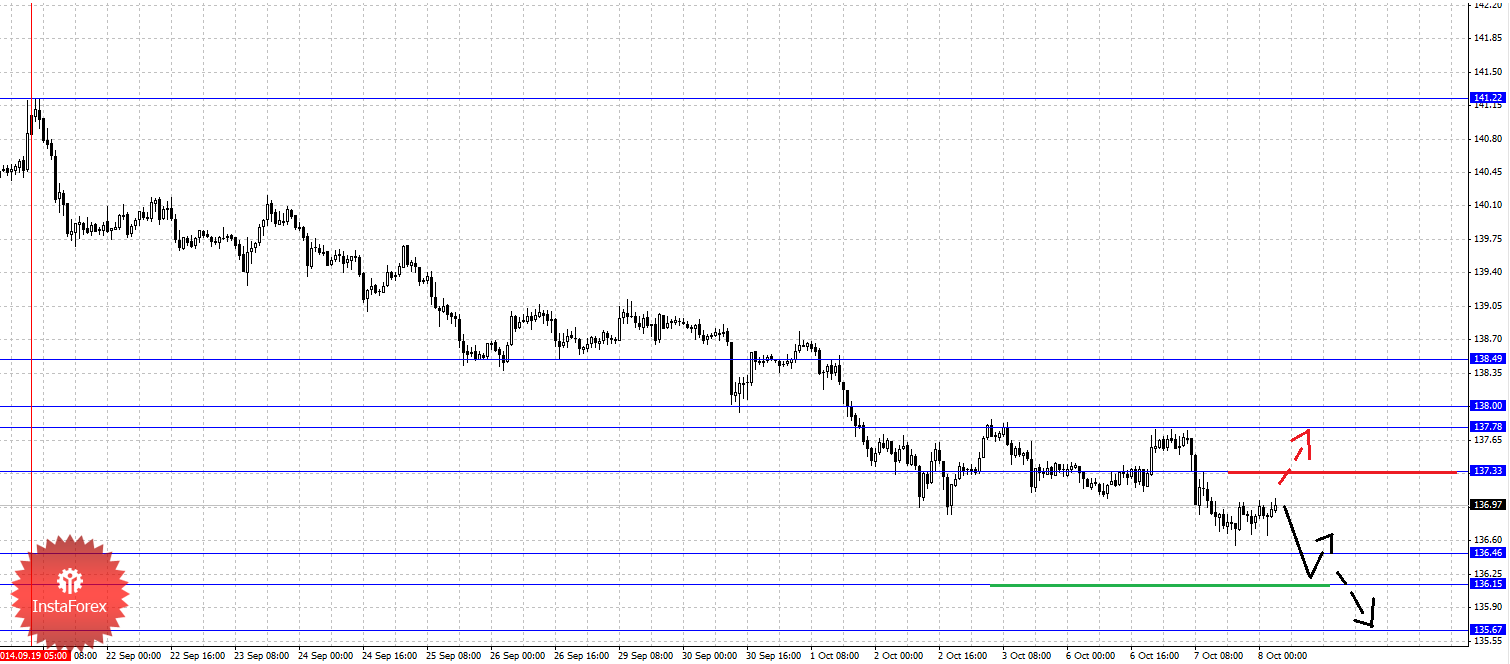 По паре Евро/Иена ключевыми уровнями в масштабе Н1 являются: 138.49, 138.00, 137.78, 137.33, 136.46, 136.15 и 135.67. Здесь, краткосрочное нисходящее движение, ожидаем в диапазоне 136.46 – 136.15, пробой последнего значения, позволит рассчитывать на движение к потенциальной цели – 135.67, по достижении которого, ожидаем откат в коррекцию. Уровень 137.33 является ключевым сопротивлением для развития восходящей коррекции, его пробой будет располагать к движению до – 137.78. Проход ценой шумового коридора 137.78 – 138.00 начнет формирование восходящего потенциала для восходящего цикла, здесь потенциальная цель – 138.49.