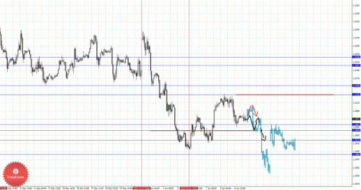 Уважаемые трейдеры, в своем аналитическом обзоре я рассматриваю развитие структуры по определенной валютной паре на предстоящую торговую сессию. После прочтения данного материала вы должны наиболее четко и понятно представлять возможные перспективы развития валют. В данном методе анализа, для наиболее простого изложения своего подхода к рынку, я использую стандартные термины технического анализа, такие как уровни поддержки и сопротивления, однако сам метод основан на свойствах фрактальной функции и несет в себе глубокий смысл понимания развития текущей и будущей ситуации. Все свои расчеты я выполняю от начальных условий развития цикла. Черной стрелкой указано направление движение цены от текущих начальных условий. Красной стрелкой показано альтернативное движение, в случае пробоя ключевых уровней для отмены развития восходящего/нисходящего цикла. Пунктирными стрелками я указываю продолжение движения. Как правило, красной стрелкой я указываю корректировочное движение и краткосрочный выход за уровень. Убедительная просьба: не используйте только одни изображения, изучите текст, чтобы понять последовательность развития того или иного события. Также прошу учесть, что для более ясного понимания изложенного здесь материала, необходимо ознакомиться с фрактальным анализом, так вы сможете понимать то, что здесь написано и как это можно использовать в своей торговой системе.