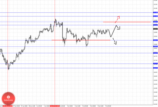 По паре Евро/Иена ключевыми уровнями являются: 131.58, 131.26, 130.77, 130.49, 129.17, 128.61, 128.03, 127.11 и 126.72. Здесь развитие потенциала для нисходящего движения от 2 июля ожидаем после пробоя 129.17, в данном случае цель 128.61, пробой которого, в свою очередь, позволит рассчитывать на движение к 128.03, возле этого уровня консолидация. Развитие импульса ожидаем после пробоя 128.00, в данном случае цель – 127.11. Потенциальным значением для низа считаем уровень 126.72, по достижении которого ожидаем консолидированное движение. Диапазон 130.49–130.77 является ключевой поддержкой для нисходящей структуры, его проход ценой продолжит развитие восходящей тенденции в масштабе Н1, в данном случае цель – 131.26. Потенциальным значением для верха пока считаем уровень – 131.58.