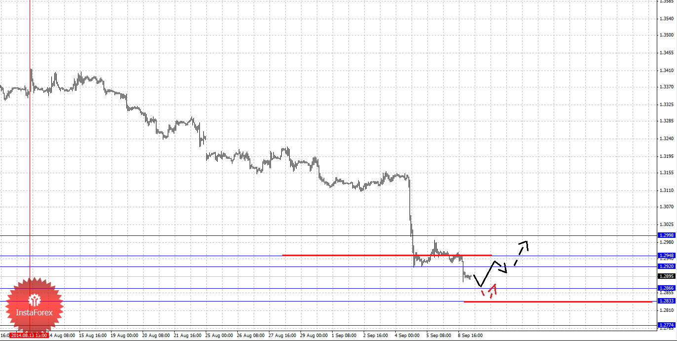 По паре Евро/Доллар ключевыми уровнями в масштабе Н1 являются: 1.2998, 1.2948, 1.2920, 1.2866, 1.2833 и 1.2774. Здесь краткосрочное нисходящее движение ожидаем в коридоре 1.2866 – 1.2833, пробой последнего значения позволит рассчитывать на движение к потенциальной цели – 1.2774, по достижении которого ожидаем откат кверху. Краткосрочное восходящее движение возможно в коридоре 1.2920 – 1.2948, пробой последнего значения приведет к углубленной коррекции, здесь цель – 1.2998.