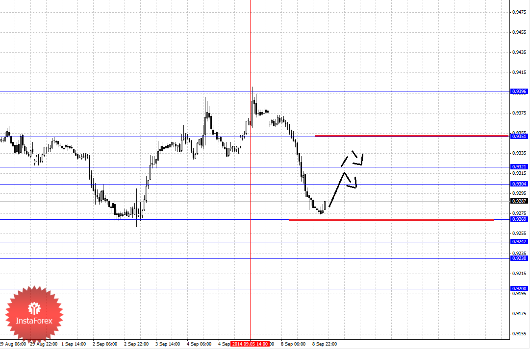 По паре Австралийский доллар/Доллар ключевыми уровнями в масштабе Н1 являются: 0.9351, 0.9321, 0.9304, 0.9269, 0.9247, 0.9230 и 0.9200. Здесь цена отменила формирование восходящей структуры, и на текущий момент мы следим за нисходящим движением от 5 сентября. На данный момент мы ожидаем оформления выраженных начальных условий для низа, в связи с чем возможен откат кверху в коридор 0.9304 – 0.9321, пробой последнего значения приведет к углубленной коррекции, в данном случае потенциальная цель – 0.9350. Продолжения движения книзу ожидаем после пробоя 0.9269, в данном случае цель – 0.9247, возле этого уровня консолидация цены. Проход ценой уровня 0.9230 должен сопровождаться развитием направленного движения, здесь цель – 0.9200.