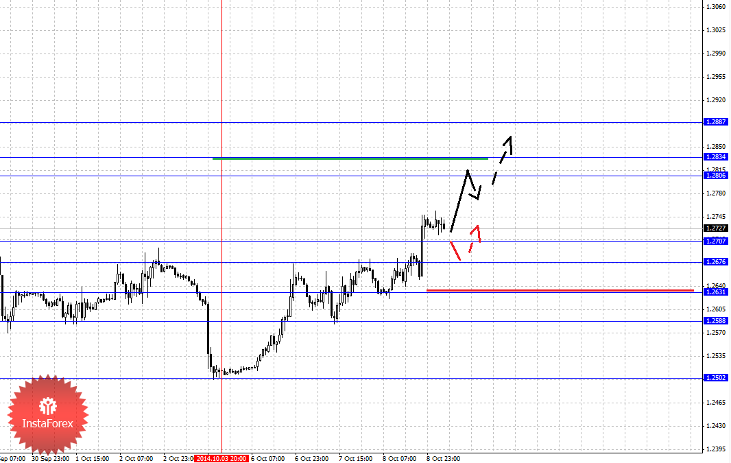 По паре Евро/Доллар ключевыми уровнями в масштабе Н1 являются: 1.2887, 1.2834, 1.2806, 1.2707, 1.2676, 1.2631 и 1.2588. Здесь мы продолжаем следить за развитием восходящей структуры от 3 октября. На текущий момент потенциальным значением для верха является уровень 1.2806, по достижении которого ожидаем консолидацию в коридоре 1.2806 – 1.2834, пробой последнего значения позволит рассчитывать на движение к 1.2887. Краткосрочное нисходящее движение возможно в коридоре 1.2707 – 1.2676, пробой последнего значения будет располагать к развитию углубленной коррекции, здесь цель – 1.2631, этот уровень является ключевой поддержкой для верха, его проход ценой будет располагать к формированию потенциала для нисходящего движения, здесь первая цель – 1.2588.