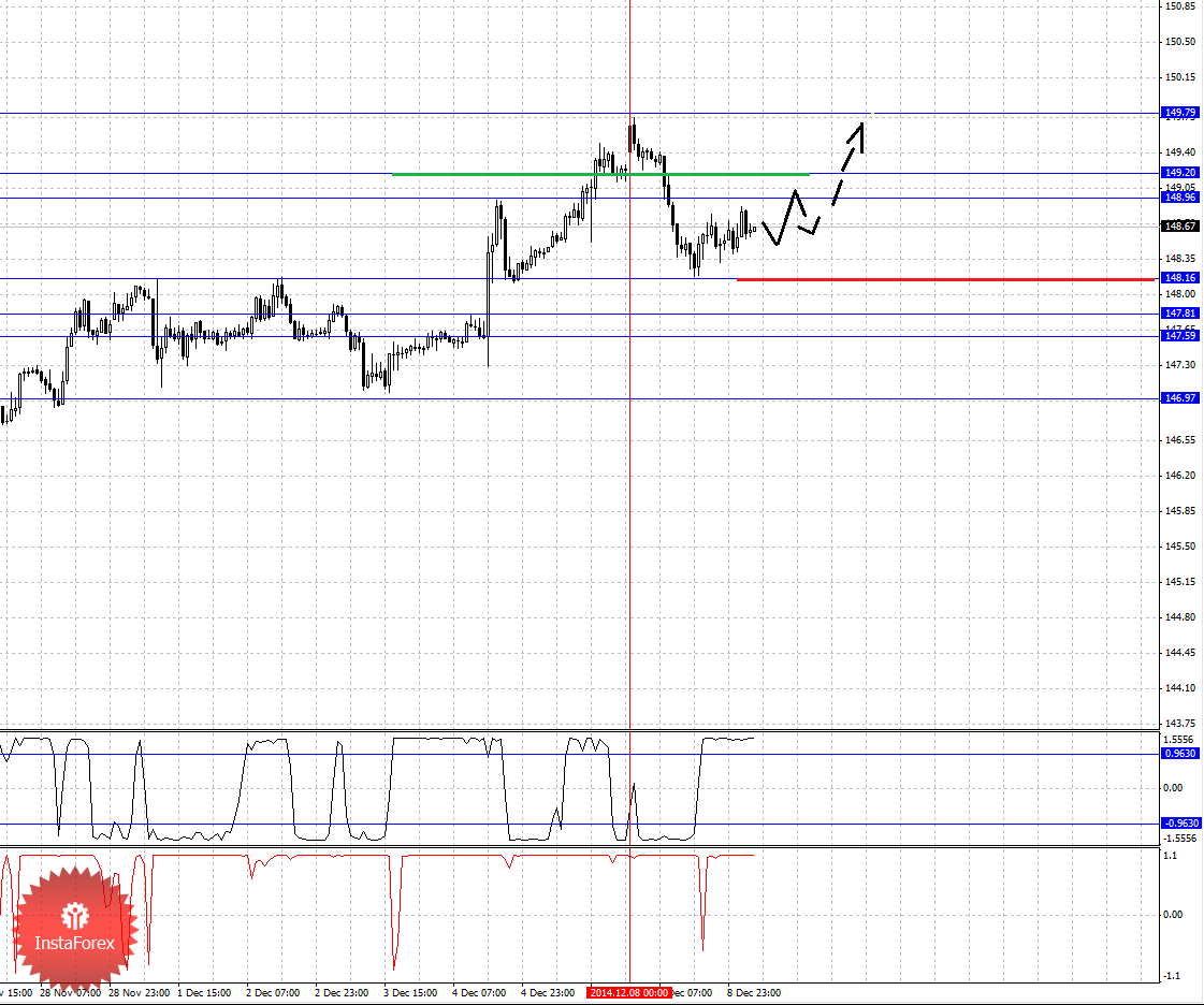 По паре Евро/Иена ключевыми уровнями в масштабе Н1 являются: 149.79, 149.20, 148.96, 148.16, 147.81, 147.59 и 146.97. Здесь, цена вошла в стадию коррекции от восходящей структуры. Продолжения движения к верху, ожидаем после пробоя 148.16, в данном случае цель – 147.81, проход ценой шумового коридора 147.81 – 147.59 позволит рассчитывать на движение к потенциальной цели – 146.97, возле этого уровня ожидаем консолидацию. Краткосрочное восходящее движение, возможно в коридоре 148.96 – 149.20, пробой последнего значения будет располагать к развитию восходящей коррекции, здесь цель – 149.79.