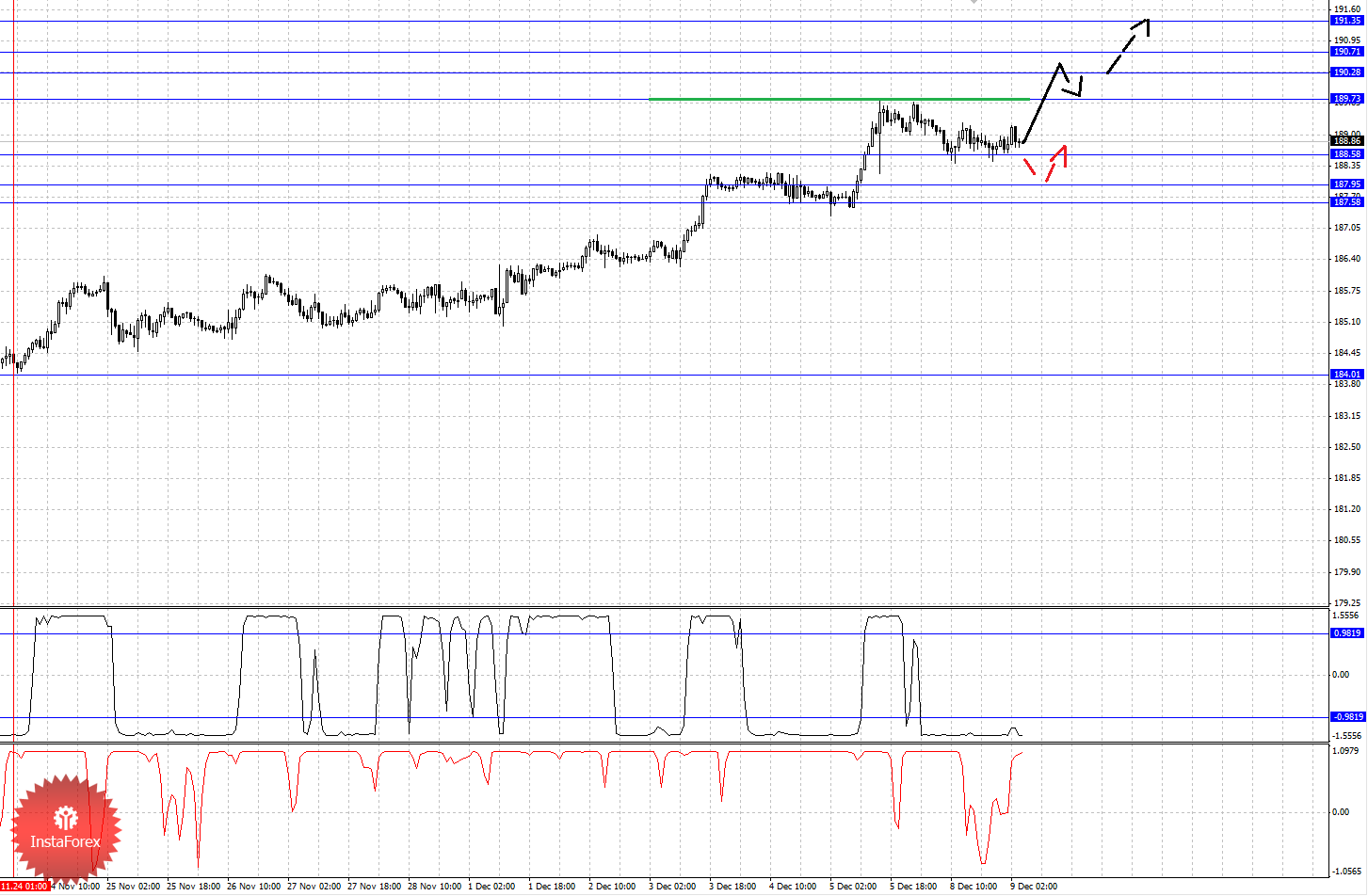 По паре Фунт/Иена ключевыми уровнями в масштабе Н1 являются: 191.35, 190.71, 190.28, 189.73, 188.58, 187.95 и 187.58. Здесь, мы продолжаем следить за развитием восходящей структуры от 24 ноября. Продолжения движения к верху, ожидаем после пробоя 189.75, в данном случае цель – 190.28, в коридоре 190.28 – 190.71 консолидация цены. Потенциальным значением для верха, считаем уровень 191.35, по достижении которого, ожидаем откат к низу. Краткосрочное нисходящее движение, возможно после пробоя 188.58, здесь цель – 187.95, диапазон 187.95 – 187.58 является ключевой поддержкой для верха.