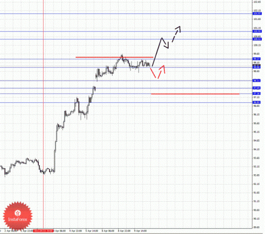 По паре Доллар/Иена ключевыми уровнями являются: 101.97, 100.95, 100.51, 99.37, 98.88, 98.11, 97.69, 97.36 и 96.85. Здесь мы продолжаем следить за восходящей структурой от 3 апреля. Краткосрочное восходящее движение, а также консолидация, возможна в коридоре 98.88 – 99.37, пробой последнего значения должен сопровождаться выраженным восходящим движением, в данном случае цель 100.51, в коридоре 100.51 – 100.95 консолидация цены. Потенциальным значением для верха считаем уровень 101.97, по достижении которого ожидаем откат книзу. Краткосрочное нисходящее движение возможно в коридоре 98. 11 – 97.69, пробой последнего значения приведет к углубленному движению, здесь цель 97.36, от этого уровня возможен разворот кверху, его пробой будет располагать к формированию нисходящей структуры, в данном случае потенциальная цель – 96.85.