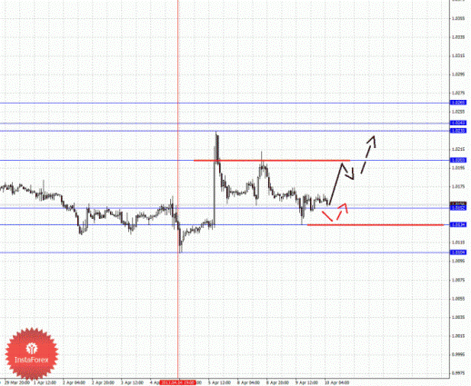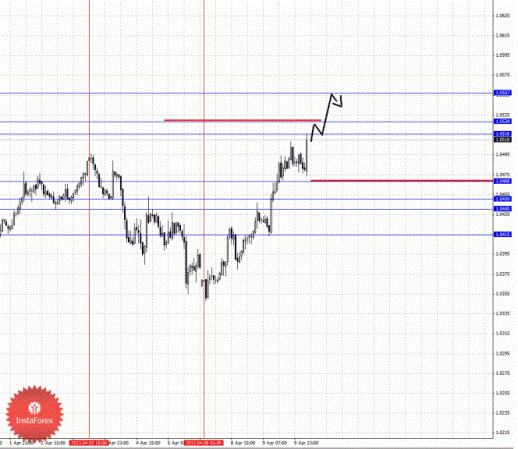 По паре Австралийский доллар/Доллар ключевыми уровнями являются: 1.0557, 1.0528, 1.0516, 1.0468, 1.0450, 1.0440 и 1.0415. Здесь мы следим за небольшим восходящим циклом от 8 апреля. Краткосрочное восходящее движение возможно в коридоре 1.0516 – 1.0528, пробой последнего значения позволит рассчитывать на движение к потенциальной цели – 1.0557, по достижении которого ожидаем откат книзу. Краткосрочное нисходящее движение возможно после пробоя 1.0468, в данном случае цель 1.0450. Диапазон 1.0450 – 1.0440 является ключевой поддержкой для восходящей структуры, его проход ценой будет располагать к развитию нисходящей структуры, в данном случае потенциальная цель – 1.0415.