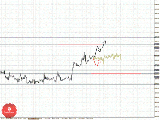 По паре Доллар/Франк ключевым уровня являются: 0.9443, 0.9414, 0.9398, 0.9322, 0.9303, 0.9289, 0.9274 и 0.9241. Здесь мы продолжаем следить за восходящей структурой от 3 декабря. На текущий момент потенциальной целью для верха является уровень 0.9398, по достижении которого ожидаем консолидированное движение в коридоре 0.9398 – 0.9414. Пробой уровня 0.9414 должен сопровождаться выраженным восходящим движением, в данном случае цель 0.9443, по достижении этого уровня ожидаем консолидацию. Краткосрочное нисходящее движение возможно после пробоя 0.9322, в данном случае цель 0.9303, в коридоре 0.9303 – 0.9289 консолидация цены, отсюда высока вероятность разворота кверху. Пробой уровня 0.9274 приведет к отмене восходящей структуры от 3 декабря, в данном случае потенциальная цель 0.9241.