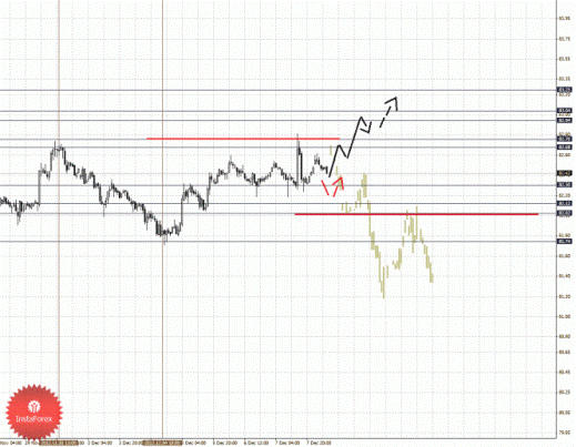 По паре Доллар/Иена ключевыми уровнями являются: 83.25, 83.04, 82.94, 82.68, 82.30, 82.12, 82.02 и 81.74. Здесь цели остались без изменения и мы продолжаем следить за формирование восходящей структуры от 4 декабря. На текущий момент потенциальной целью для верха является уровень 82.68, по достижении которого ожидаем консолидированное движение в коридоре 82.68 – 82.76. Пробой уровня 82.76 должен сопровождаться выраженным восходящим движением, в данном случае цель 82.94, в коридоре 82.94 – 83.04 консолидация цены. Потенциальным значением для верха считаем уровень 83.25, по достижении которого ожидаем откат книзу. Уровень 82.30 является ключевой поддержкой для верха, его пробой приведет к нисходящему движению до 82.12. Проход ценой диапазона 82.12 – 82.02 будет располагать к развитию нисходящей структуры, в данном случае потенциальная цель – 81.74.