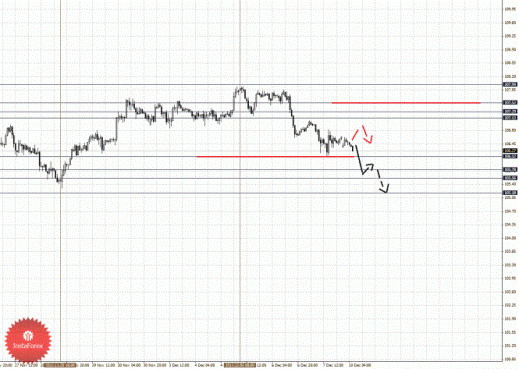 По паре Евро/Иена ключевыми уровнями являются: 107.99, 107.52, 107.29, 107.12, 106.12, 105.78, 105.56 и 105.18. Здесь от 5 декабря формируется потенциал для нисходящего движения. Отмены развития восходящей структуры от 28 ноября ожидаем после пробоя 106.12, в данном случае цель 105.78, в коридоре 105.78 – 105.56 консолидация цены. Потенциальным значением для низа считаем уровень 105.18, по достижении которого ожидаем откат кверху. Краткосрочное восходящее движение возможно в коридоре 107.12 – 107.29, пробой последнего значения приведет к углубленной коррекции, здесь цель 107.52, от этого уровня существует вероятность разворота книзу, его пробой будет располагать к последующему развитию восходящей структуры, в данном случае первая цель – 107.99.