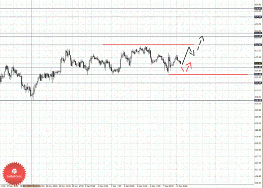 По паре Фунт/Иена ключевыми уровнями являются: 134.47, 134.10, 133.35, 133.20, 132.82, 131.80, 131.48, 131.10 и 130.29. Здесь мы продолжаем следить за формированием восходящей структуры от 28 ноября. Продолжения движения кверху ожидаем после пробоя 132.82, в данном случае цель 133.20, возле этого уровня консолидация цены. Проход ценой шумового диапазона 133.20 – 133.35 должен сопровождаться выраженным восходящим движением, в данном случае цель 134.10. Потенциальным значением для верха считаем уровень 134.47, по достижении которого ожидаем консолидированное движение. Краткосрочное нисходящее движение возможно в коридоре 131.80 – 131.48, пробой последнего значения окажет негативное влияние на развитие восходящей структуры от 28 ноября, в данном случае цель 131.10, от этого уровня мы ожидаем последний ключевой разворот кверху, его пробой будет располагать к развитию нисходящей структуры, в данном случае потенциальная цель – 130.29.