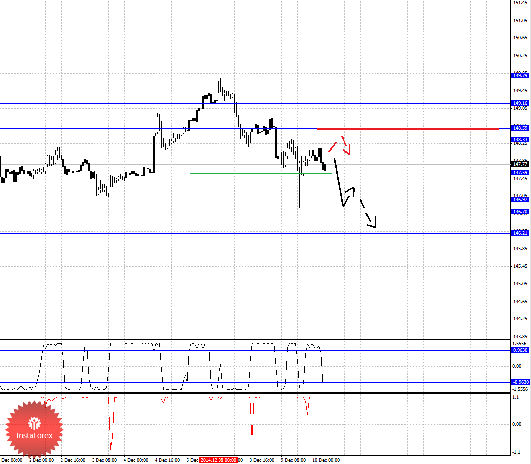 По паре Евро/Иена ключевыми уровнями в масштабе Н1 являются: 149.16, 148.59, 148.33, 147.59, 146.97, 146.70 и 146.21. Здесь, мы следим за развитием нисходящей структуры от 8 декабря. Продолжения движения к низу, ожидаем после пробоя 147.59, в данном случае цель – 146.97, в коридоре 146.97 – 146.70 консолидация цены. Потенциальным значением для низа, считаем уровень 146.21, по достижении которого, ожидаем консолидацию. Краткосрочное восходящее движение, возможно в коридоре 148.33 – 148.59, пробой последнего значения приведет к углубленной коррекции, здесь цель – 149.16, этот уровень является ключевым сопротивлением для развития восходящей структуры в масштабе Н1.