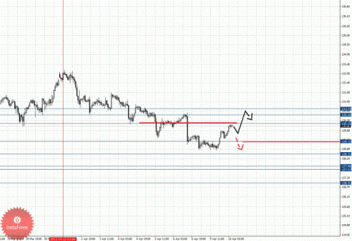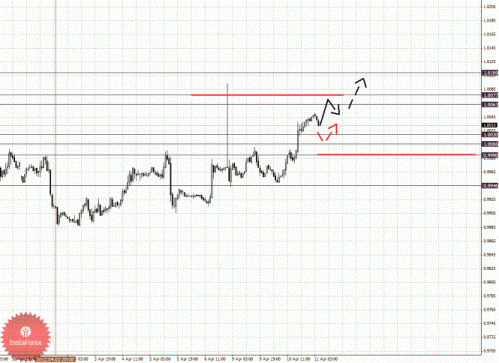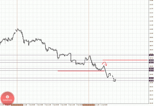 Здесь отмены развития восходящей структуры от 9 апреля ожидаем после пробоя 1.3067. По паре Доллар/Франк отмены развития нисходящей структуры от 5 апреля ожидаем после пробоя 0.9211. По паре Фунт/Доллар следим за формированием локальной нисходящей структурой от 10 апреля. По паре Доллар/Йена продолжаем следить за развитием нисходящего цикла от 2 апреля. По паре Евро/Йена продолжения движения книзу ожидаем после пробоя 105.43, цели выставлены от нисходящей структуры 2 апреля. По паре Фунт/Йена ситуация развития аналогично Евро/Йена, и здесь основной тенденцией является нисходящая.
