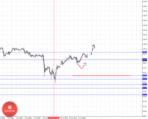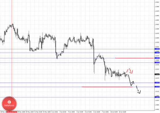 По паре Евро/Иена ключевыми уровнями являются: 134.00, 132.85, 131.96, 131.43, 129.81, 129.29, 128.93, 128.44, 128.00 и 126.84. Здесь мы продолжаем следить за развитием восходящей структуры от 7 июня. Продолжения движения кверху ожидаем после пробоя 131.43, в данном случае цель – 131.96, в этом коридоре консолидация цены. Пробой уровня 131.96 должен сопровождаться выраженным восходящим движением, в данном случае цель 132.85, возле этого уровня консолидация цены. Потенциальным значением для верха считаем уровень 134.00, по достижении которого ожидаем откат к низу. Краткосрочное нисходящее движение возможно после пробоя 129.81, здесь цель 129.29, коридор 129.29–128.93 является ключевой поддержкой для восходящей структуры, отсюда высока вероятность разворота кверху. Пробой уровня 128.93 приведет к углубленному движению в корректировочной зоне, здесь цель 128.44. Пробой уровня 128.00 приведет к отмене восходящей структуры от 7 июня, в данном случае потенциальная цель – 126.84.