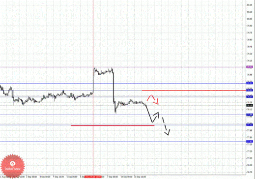 По паре Доллар/Иена ключевыми уровнями являются: 79.02, 78.67, 78.51, 78.37, 77.99, 77.77 и 77.42. Здесь мы следим за формированием нисходящего движения от 6 сентября. Продолжения движения книзу ожидаем после пробоя 77.99, в данном случае цель 77.77, в этом диапазоне консолидация цены. Потенциальным значением для низа пока считаем уровень 77.42, движение к которому ожидаем после пробоя 77.75. Краткосрочное восходящее движение возможно в коридоре 78.37 – 78.51, пробой последнего значения приведет к углубленному движению, здесь цель 78.67, от этого уровня высока вероятность разворота книзу, его пробой будет располагать к развитию восходящей структуры, в данном случае потенциальная цель 79.02.
