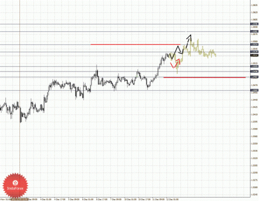 По паре Евро/Доллар следим за небольшим восходящим циклом от 10 декабря. По паре Доллар/Франк продолжаем следить за восходящей структурой от 3 декабря, корреляция с Евро расходится. По паре Фунт/Доллар следим за формированием начальных условий для восходящего движения от 7 декабря. По паре Доллар/Иена цена вновь зашла в горизонтальный коридор, основной структурой является восходящая от 4 декабря. По паре Евро/Иена развития восходящего движения ожидаем после пробоя 107.52. По паре Фунт/Иена ситуация пока остается без изменения.