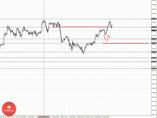 По паре Евро/Иена ключевыми уровнями являются: 107.99, 107.52, 106.86, 106.62, 106.12, 105.78, 105.56 и 105.18. Здесь размерность восходящего движения от 10 декабря такова, что пока мы не можем различить выраженных начальных условий для последующего формирования восходящего цикла. Продолжения движения кверху ожидаем после пробоя 107.52, в данном случае потенциальная цель 107.99, до этого уровня ожидаем выраженное оформление начальных условий. Краткосрочное нисходящее движение возможно в диапазоне 106.86 – 106.62, этот коридор является ключевой поддержкой для развития верха, его проход ценой будет располагать к развитию нисходящей структуры от 5 декабря, в данном случае первая цель 106.12.