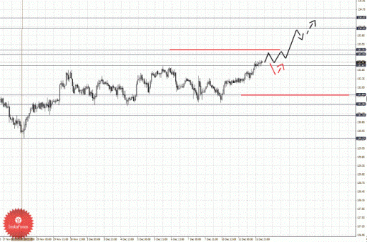 По паре Фунт/Иена ключевыми уровнями являются: 134.47, 134.10, 133.35, 133.20, 132.82, 131.80, 131.48, 131.10 и 130.29. Здесь, мы продолжаем следить за формированием восходящей структуры от 28 ноября. Продолжения движения кверху ожидаем после пробоя 132.82, в данном случае цель 133.20, возле этого уровня консолидация цены. Проход ценой шумового диапазона 133.20 – 133.35 должен сопровождаться выраженным восходящим движением, в данном случае цель 134.10. Потенциальным значением для верха считаем уровень 134.47, по достижении которого ожидаем консолидированное движение. Краткосрочное нисходящее движение возможно в коридоре 131.80 – 131.48, пробой последнего значения окажет негативное влияние на развитие восходящей структуры от 28 ноября, в данном случае цель 131.10, от этого уровня мы ожидаем последний ключевой разворот кверху, его пробой будет располагать к развитию нисходящей структуры, в данном случае потенциальная цель – 130.29.