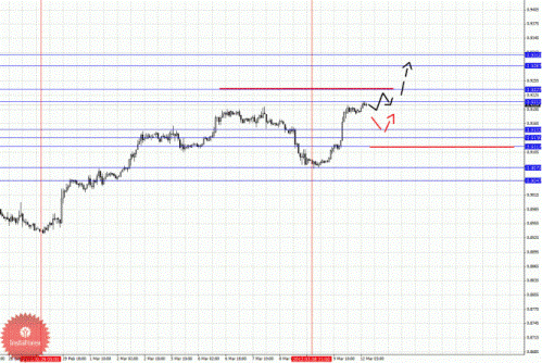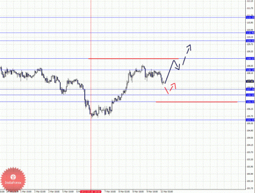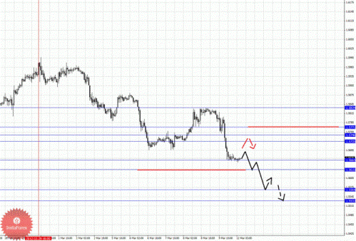По паре Евро/Доллар цена отменила развитие восходящей структуры, и здесь мы следим за движением книзу от 8 марта. По паре Доллар/Франк следим за развитием восходящей тенденции от 8 марта. По паре Фунт/Доллар продолжаем следить за нисходящим циклом от 29 февраля. По паре Доллар/Йена продолжения движения кверху ожидаем после пробоя 82.68. По паре Евро/Йена ситуация пока осталась без изменения, и здесь мы следим за восходящей структурой от 6 марта. По паре Фунт/Йена продолжения движения кверху ожидаем после пробоя 129.72.