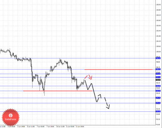 По паре Евро/Доллар цена находится возле ключевых пределов для восходящего движения, в связи с чем мы ожидаем развития нисходящей коррекции. По паре Доллар/Франк также ожидаем движение в корректировочную область. По паре Фунт/Доллар пока продолжаем следить за восходящим движением в масштабе Н1. По паре Доллар/Иена следим за формированием нисходящей структуры от 10 июня и рассматриваем его в качестве потенциала для продолжения основной тенденции. По парам Евро/Иена и Фунт/Иена пока не наблюдаем каких-либо начальных условий для верха и следим за формированием нисходящей структуры от 11 июня.