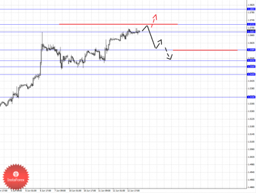 По паре Евро/Иена ключевыми уровнями являются: 131.29, 129.72, 129.21, 128.72, 126.84, 126.11, 124.52 и 123.89. Здесь нисходящую структуру от 10 июня мы рассматриваем в качестве локальных начальных условий для продолжения нисходящей тенденции. Продолжения движения книзу ожидаем после пробоя 126.84, здесь цель 126.11, в этом диапазоне консолидация цены. Пробой уровня 126.11 должен сопровождаться выраженным восходящим движением, в данном случае цель 124.52. Потенциальным значением для низа считаем уровень 123.89, по достижении которого ожидаем консолидированное движение. Краткосрочное восходящее движение возможно в коридоре 128.72 – 129.21, пробой последнего значения приведет к углубленному движению, здесь цель 129.72, от этого уровня мы ожидаем ключевой разворот книзу, его пробой будет располагать к развитию восходящей структуры, в данном случае потенциальная цель – 131.29.