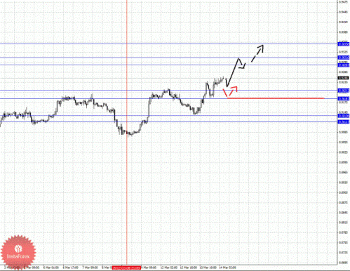 По паре Доллар/Франк ключевым уровня являются: 0.9350, 0.9310, 0.9287, 0.9212, 0.9187, 0.9136 и 0.9117. Здесь мы продолжаем следить за восходящей структурой от 8 марта. Потенциальной целью для верха на текущий момент является уровень 0.9287, по достижении которого ожидаем консолидацию в коридоре 0.9287 – 0.9310. Пробой уровня 0.9310 позволит рассчитывать на движение к 0.9350, от этого уровня ожидаем откат книзу. Краткосрочное нисходящее движение возможно в диапазоне 0.9212 – 0.9187, пробой последнего значения окажет негативное влияние на развитие восходящей структуры в масштабе Н1, в данном случае потенциальная цель 0.9136. Диапазон 0.9136 – 0.9117 шумовой, до него мы ожидаем оформления начальных условий.