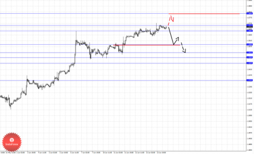 По паре Евро/Доллар цена находится возле ключевых пределов от восходящей структуры 29 мая и здесь мы ожидаем движения книзу. По паре Доллар/Франк потенциал для нисходящего движения по-прежнему ограничен уровнем 0.9103. По паре Фунт/Доллар пока не наблюдаем каких-либо начальных условий для нисходящего движения. По паре Доллар/Иена продолжаем следить за нисходящей структурой от 10 июня. По паре Евро/Иена продолжения движения книзу ожидаем после пробоя 126.11. По паре Фунт/Иена мы пересмотрели ключевые цели в связи с формированием потенциала для верха от 13 июня.