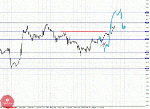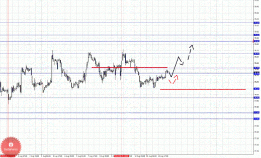 По паре Евро/Доллар и Доллар/Франк формируется локальная структура для продолжения основной тенденции от 24 июля в масштабе Н1. По паре Фунт/Доллар продолжаем следить за восходящей структурой от 2 августа. По паре Доллар/Иена цена пока не отменила восходящую структуру от 1 августа, ее отмены ожидаем после пробоя 78.14, также смотрите среднесрочной обзор данного инструмента на моем блоге. По паре Евро/Иена формируется локальная структура для продолжения развития восходящей тенденции в масштабе Н1. По паре Фунт/Иена продолжаем следить за восходящим циклом от 3 августа.