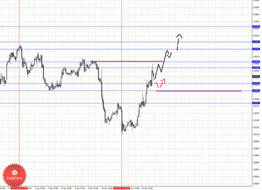 По паре Доллар/Канадский доллар ключевыми уровнями являются: 0.9887, 0.9861, 0.9849, 0.9823, 0.9804, 0.9794 и 0.9772. Здесь мы продолжаем следить за локальной нисходящей структурой от 4 января и на текущий момент данная валюта вошла в нормальную стадию размерности для масштаба Н1. Продолжения движения книзу ожидаем после пробоя 0.9823, в данном случае цель 0.9804, в коридоре 0.9804 -0.9794 консолидация цены. Потенциальным значением для низа считаем уровень 0.9772, по достижении которого ожидаем откат кверху. Краткосрочное восходящее движение возможно в коридоре 0.9849 – 0.9861, пробой последнего значения окажет негативное влияние на развитие нисходящей структуры от 4 января, в данном случае потенциальная цель – 0.9887.