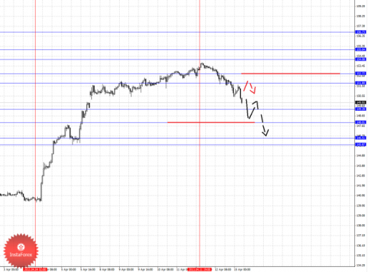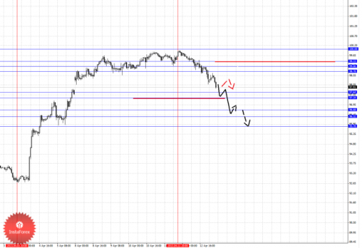 По паре Евро/Доллар восходящая структура от 4 апреля все еще актуальна для определения целей, движение книзу пока рассматриваем в качестве коррекции. По паре Доллар/Франк цена находится в неустойчивой зоне относительно нисходящей тенденции и здесь мы ожидаем оформления потенциала для движения кверху. По паре Фунт/Доллар продолжаем следить за восходящей структурой от 4 апреля. По паре Доллар/Иена от 11 апреля формируется потенциал для нисходящей структуры. По парам Евро/Иена и Фунт/Иена также наблюдаем формирование потенциала для нисходящего движения в масштабе Н1.