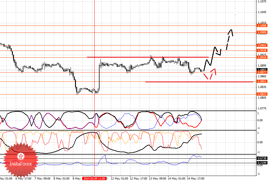 По паре Доллар/Канадский доллар ключевыми уровнями в масштабе Н1 являются: 1.1008, 1.0989, 1.0951, 1.0938, 1.0918, 1.0877, 1.0851 и 1.0815. Здесь от 9 мая формируется потенциал для развития восходящего цикла. Продолжения движения кверху ожидаем после пробоя 1.0918, в данном случае цель – 1.0938, возле этого уровня консолидация цены. Проход ценой шумового диапазона должен сопровождаться выраженным восходящим движением, здесь цель – 1.0989. Потенциальным значением для верха считаем уровень 1.1008, по достижении которого ожидаем консолидацию. Краткосрочное нисходящее движение возможно в коридоре 1.0877 – 1.0851, пробой последнего значения будет располагать к развитию нисходящей структуры, здесь потенциальная цель - 1.0815.