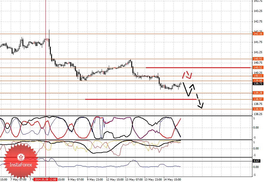 По паре Евро/Иена ключевыми уровнями в масштабе Н1 являются: 140.93, 140.52. 140.11. 139.88, 139.28, 138.97 и 138.50. Здесь краткосрочное нисходящее движение ожидаем в диапазоне 139.28 – 138.97, пробой последнего значения позволит рассчитывать на движение к потенциальной цели – 138.50, по достижении которого ожидаем откат кверху. Краткосрочное восходящее движение возможно в коридоре 139.88 – 140.11, пробой последнего значения приведет к углубленному движению, здесь цель – 140.52, от этого уровня ожидаем ключевой разворот книзу, его проход ценой будет располагать к развитию восходящей структуры, в данном случае цель – 140.93.