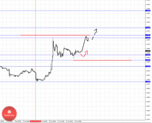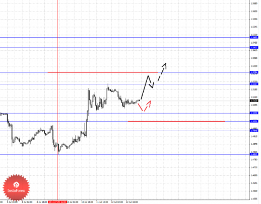 По паре Евро/Доллар важными уровнями являются: 1.3483, 1.3309, 1.3234, 1.3207, 1.3033, 1.2979, 1.2915 и 1.2760. Здесь восходящую структуру от 9 июля мы рассматриваем в качестве потенциальных начальных условий. Продолжения движения кверху ожидаем после прохода ценой шумового диапазона 1.3207–1.3234, в данном случае цель – 1.3309, возле этого уровня консолидация цены. Пробой уровня 1.3309 должен сопровождаться импульсивным движением к потенциальной цели – 1.3483. Корректировочное нисходящее движение ожидаем в коридоре 1.3033–1.2979, пробой последнего значения приведет к углубленной коррекции, здесь цель – 1.2915, от этого уровня высока вероятность разворота кверху, его пробой будет располагать к развитию нисходящей тенденции, в данном случае потенциальная цель – 1.2760.