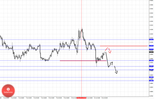 По паре Доллар/Канадский доллар ключевыми уровнями являются: 1.0493, 1.0464, 1.0433, 1.0376, 1.0361, 1.0320, 1.0287 и 1.0230. Здесь мы следим за формированием потенциала для нисходящего движения от 5 июля. Продолжения движения книзу ожидаем после прохода ценой шумового диапазона 1.0376–1.0361, в данном случае цель 1.0320, в коридоре 1.0320–1.0287 ожидаем краткосрочное нисходящее движение, а также консолидацию. Пробой уровня 1.0285 должен сопровождаться выраженным нисходящим движением, здесь потенциальная цель – 1.0230. Корректировочное восходящее движение возможно в коридоре 1.0433–1.0464, пробой последнего значения приведет к развитию углубленной коррекции, в данном случае цель – 1.0493.