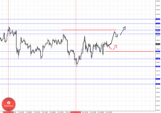 По паре Евро/Иена ключевыми уровнями являются: 131.58, 131.26, 130.77, 130.49, 129.17, 128.61, 128.03, 127.11 и 126.72. Здесь цена по-прежнему остается в зоне начальных условий для нисходящего движения от 2 июля, отмены данной структуры ожидаем после пробоя 130.77. Продолжения движения книзу возможно после очередного пробоя 129.17, в данном случае цель 128.61, пробой которого, в свою очередь, позволит рассчитывать на движение к 128.03, возле этого уровня консолидация. Развитие импульса ожидаем после пробоя 128.00, в данном случае цель – 127.11. Потенциальным значением для низа считаем уровень 126.72, по достижении которого ожидаем консолидированное движение. Диапазон 130.49–130.77 является ключевой поддержкой для нисходящей структуры, его проход ценой продолжит развитие восходящей тенденции в масштабе Н1, в данном случае цель – 131.26. Потенциальным значением для верха пока считаем уровень – 131.58.