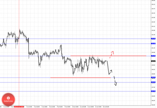 По паре Фунт/Иена ключевыми уровнями являются: 152.04, 151.60, 150.49, 148.54, 148.10 и 147.30. Здесь краткосрочное нисходящее движение ожидаем в коридоре 148.54–148.10, пробой последнего значения позволит рассчитывать на движение к потенциальной цели – 147.30, по достижении которого ожидаем консолидированное движение. Уровень 150.49 является важной ключевой поддержкой для нисходящей структуры от 3 июля, его проход ценой будет располагать к развитию восходящего движения в масштабе Н1, в данном случае цель – 151.60. Диапазон 151.60 – 152.04 шумовой.