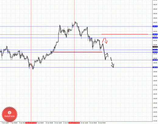 По паре Фунт/Иена ключевыми уровнями являются: 144.12, 143.23, 142.85, 141.51, 141.23, 140.36 и 139.54. Здесь мы следим за начальными условиями для низа от 14 января, которые по своей структуре несколько отличаются от пары Евро/Иена. Продолжения движения книзу ожидаем после прохода ценой шумового диапазона 141.51 – 141.23, в данном случае цель 140.36. Потенциальным значением для низа считаем уровень 139.54, по достижении которого ожидаем откат кверху. Краткосрочное восходящее движение возможно в коридоре 142.85 – 143.23, пробой последнего значения приведет к развитию восходящей тенденции, в данном случае потенциальная цель – 144.12.