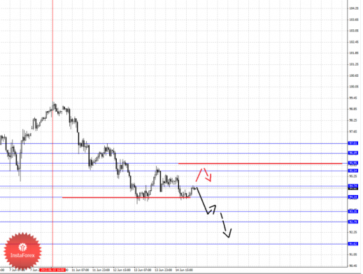 По паре Евро/Иена ключевыми уровнями являются: 129.21, 128.14, 127.48, 126.84, 124.52, 123.89 и 122.62. Здесь мы следим за нисходящей структурой от 10 июня. Краткосрочное нисходящее движение, ожидаем в диапазоне 124.52–123.89, пробой последнего значения должен сопровождаться выраженным восходящим движением, здесь потенциальная цель – 122.62, возле этого уровня консолидация цены. Краткосрочное восходящее движение возможно в коридоре 126.84–127.48, отсюда высока вероятность разворота книзу. Уровень 128.14 является ключевым сопротивлением для развития восходящей структуры, здесь потенциальная цель – 129.21, до этого уровня ожидаем оформления начальных условий для восходящего цикла.
