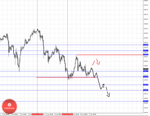 По паре Фунт/Иена ключевыми уровнями являются: 151.89, 151.11, 150.56, 148.27, 147.49, 146.39, 145.63 и 144.11. Здесь, отмены развития нисходящей структуры от 11 июня ожидаем после прохода ценой шумового диапазона 150.56–151.11, в данном случае цель 151.89, возле этого уровня консолидация цены. Краткосрочное нисходящее движение возможно в коридоре 148.27–147.49, пробой последнего значения будет располагать к развитию нисходящей структуры, в данном случае первая цель 146.39, в коридоре 146.39–145.63 консолидация цены. Потенциальным значением для низа считаем уровень 144.11, движение к которому ожидаем после пробоя 145.60.