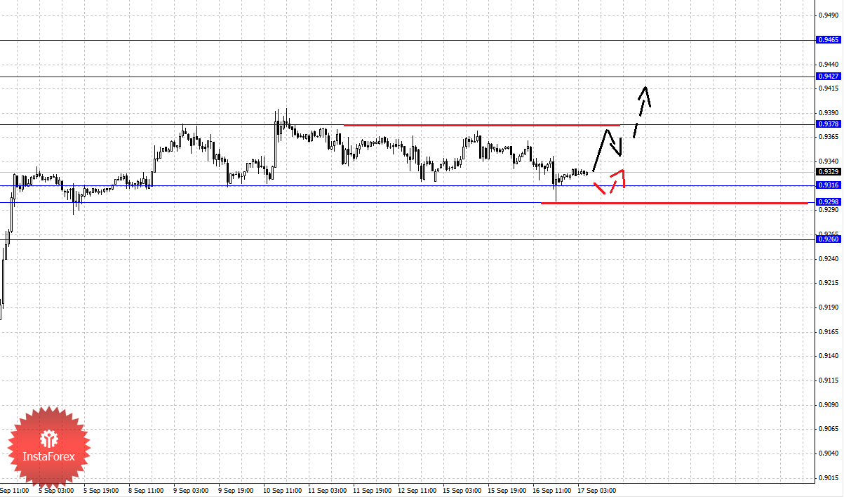 По паре Доллар/Франк ключевыми уровнями в масштабе Н1 являются: 0.9465, 0.9427, 0.9378, 0.9316, 0.9298 и 0.9260. Здесь мы пока не наблюдаем выраженных начальных условий для нисходящего цикла. Развития нисходящей структуры ожидаем после прохода ценой шумового диапазона 0.9316 – 0.9298, в данном случае цель – 0.9260, возле этого уровня консолидация цены. Уровень 0.9378 является ключевым сопротивлением для развития восходящей структуры, его проход ценой будет располагать к развитию восходящего движения, в данном случае цель – 0.9427. Потенциальным значением для верха считаем уровень 0.9465.