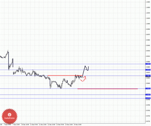 По паре Доллар/Франк ключевым уровня являются: 0.9251, 0.9218, 0.9203, 0.9154, 0.9144, 0.9113 и 0.9092. Здесь продолжения движения книзу можно ожидать после прохода ценой шумового диапазона 0.9154 – 0.9144, в данном случае цель 0.9113. Потенциальным значением для верха считаем уровень 0.9092, по достижении которого ожидаем консолидированное движение. Краткосрочное восходящее движение возможно в диапазоне 0.9203 – 0.9218, этот коридор является ключевой поддержкой для нисходящей структуры от 7 декабря, его проход ценой будет располагать к формированию начальных условий для восходящего цикла, в данном случае потенциальная цель – 0.9251.