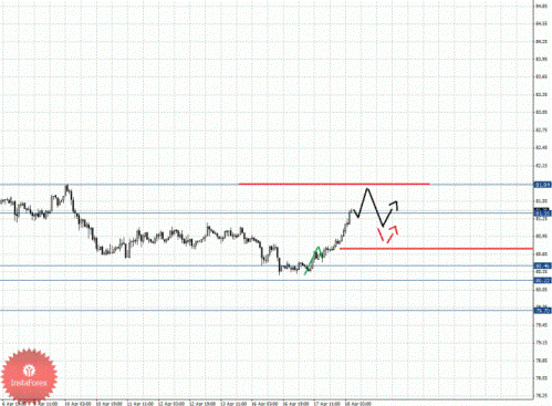 По паре Евро/Доллар следим за восходящей структурой от 16 апреля. По паре Доллар/Франк ситуация развивается аналогично Евро. По паре Фунт/Доллар следим за формированием начальных условий для верха от 16 апреля. По паре Доллар/Йена ожидаем окончательного оформления начальных условий для восходящего движения. По паре Евро/Йена следим за восходящей структурой от 16 апреля. По паре Фунт/Йена начальные условия для верха наиболее выражены, и здесь мы ожидаем более динамичного развития ситуации, нежели чем по Евро/Йена.