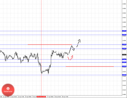 По паре Доллар/Канадский доллар ключевыми уровнями являются: 1.0380, 1.0335, 1.0311, 1.0285, 1.0274, 1.0226, 1.0213 и 1.0189. Здесь восходящую структуру от 11 апреля мы рассматриваем в качестве долгосрочных начальных условий. Продолжения движения кверху ожидаем после прохода ценой шумового диапазона 1.0274 – 1.0285, в данном случае цель 1.0311, пробой которого, в свою очередь, позволит рассчитывать на движение к 1.0335, возле этого уровня консолидация цены. Потенциальным значением для верха считаем уровень 1.0380, движение к которому ожидаем после пробоя 1.0335. Диапазон 1.0226 – 1.0213 является ключевой поддержкой для восходящей структуры, в нем ожидаем краткосрочное нисходящее движение, в также отсюда высока вероятность разворота к верху. Пробой уровня 1.0210 окажет негативное влияние на формирование восходящей тенденции в масштабе Н1, в данном случае потенциальная цель – 1.0189.